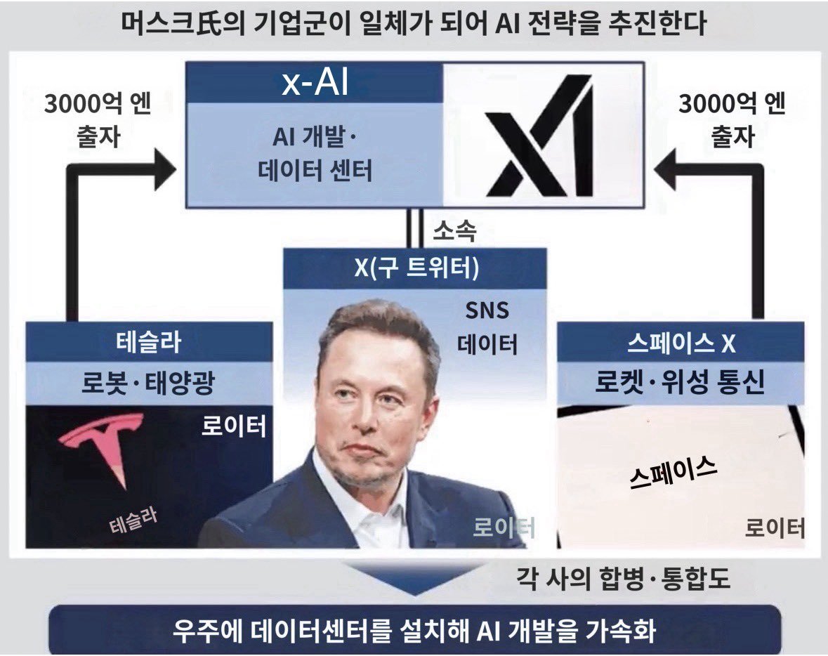 4. Grok AI (xAI의 핵심) → 완전 수직 통합된 "지구+우주 AI-로켓 제국" 탄생
